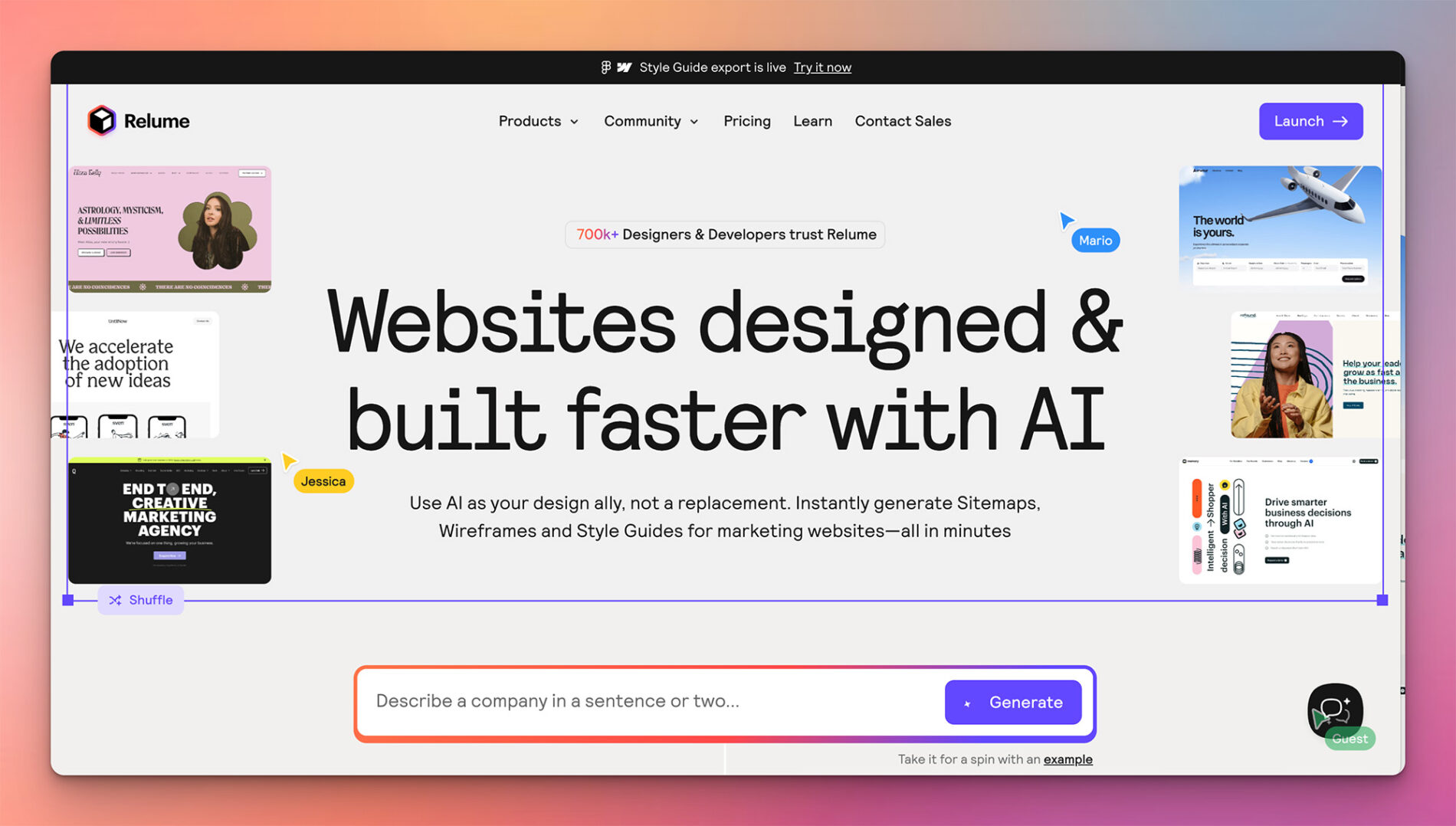 We’re fans of Relume Sitemap Builder because it transitions seamlessly from sitemap to content to high-fidelity designs, and then into design tools like Figma. It’s that smooth transition between project phases that makes your workflow so much more efficient.